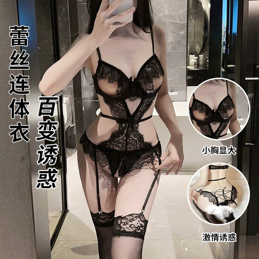 致命诱惑-透视网纱挂链性感镂空开档火辣套装 【连体衣+吊袜带】C353