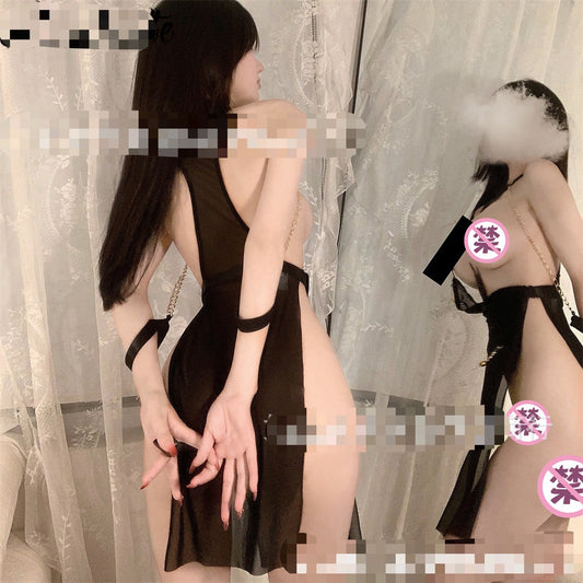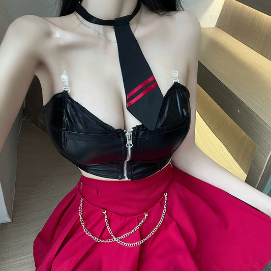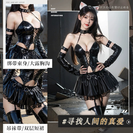 迷情护士 绑带镂空束身皮裙 【发箍+连衣裙+T裤】C241