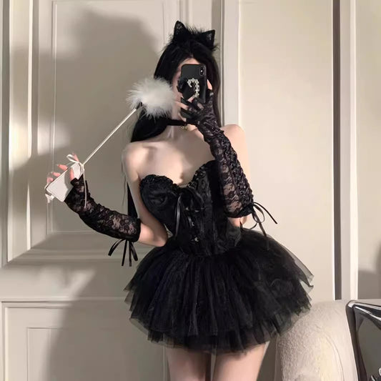 天鹅之梦 【束腰马甲+蓬蓬裙+手套+玫瑰颈环】高品质