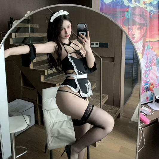你的私人女仆-诱惑黑白蕾丝绑带女仆制服